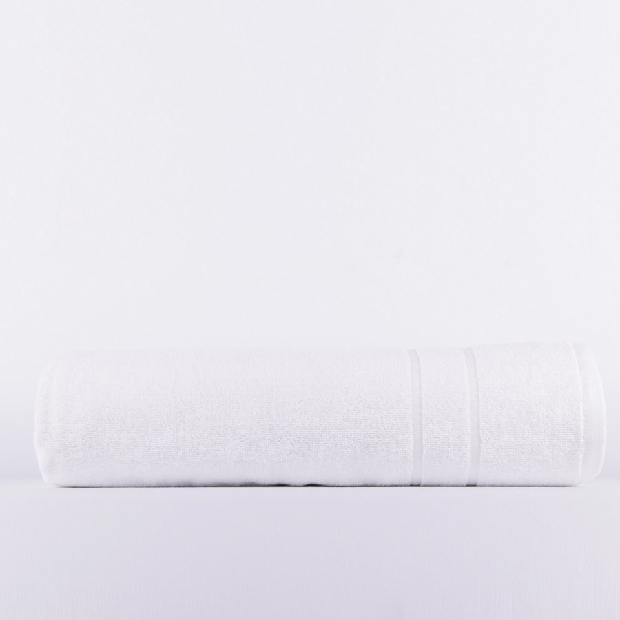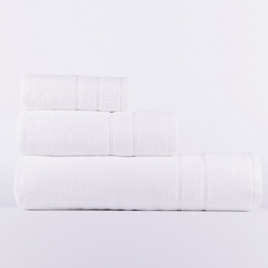 Toalla de rizo para el baño blanca lisa de hostelería disponible en tamaño tocador, lavabo, ducha y baño. 100% algodón con una densidad de 500 grs/m2 Alta durabilidad