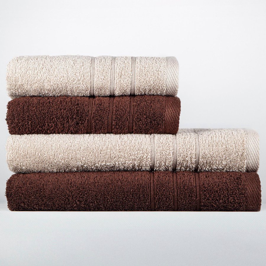 Juego de 4 Toallas Arena y Chocolate 100% Algodón