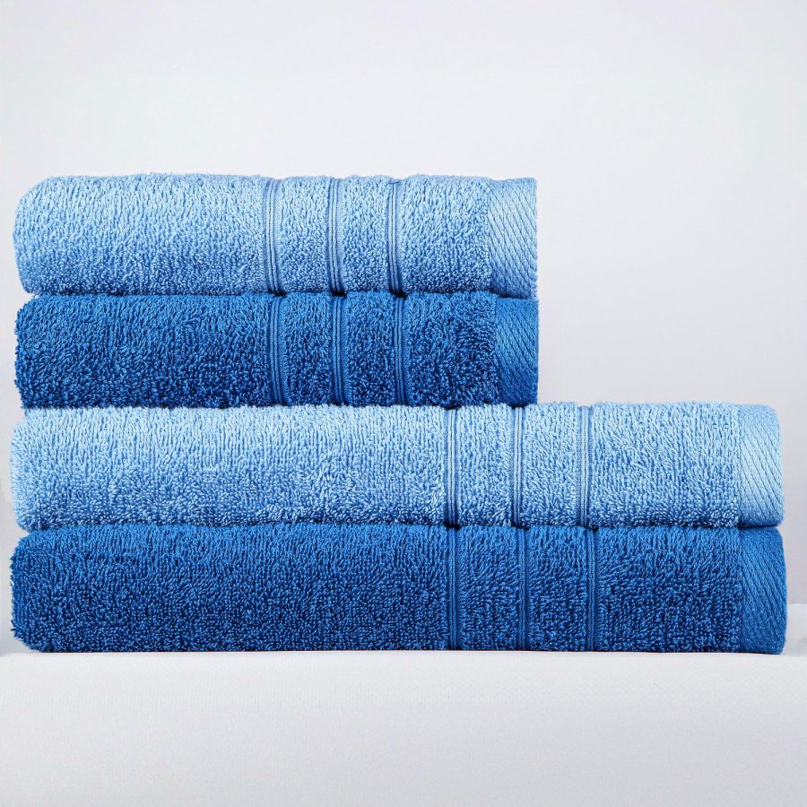 Juego de 4 toallas COLORS Azul Mar y Azul Náutico liso de rizo. 100% algodón con una densidad de 400 grs/m2. Ligera y absorbente.